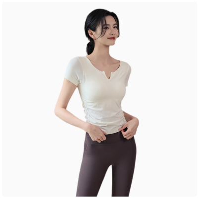 Bylure带胸垫瑜伽上衣夏薄款V领一体杯运动短袖速干健身瑜伽服女