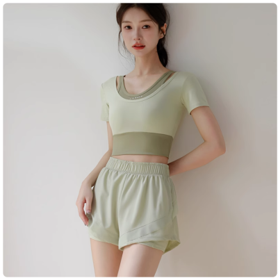 瑜伽运动套装女夏季薄款高腰显瘦透气专业跑步健身晨跑服带胸垫