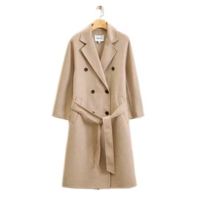 山羊绒翻领通勤简约双排扣大衣外套
