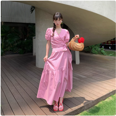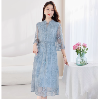 蓝色桑蚕丝连衣裙女长款2025年新款夏装今年流行高腰真丝裙子